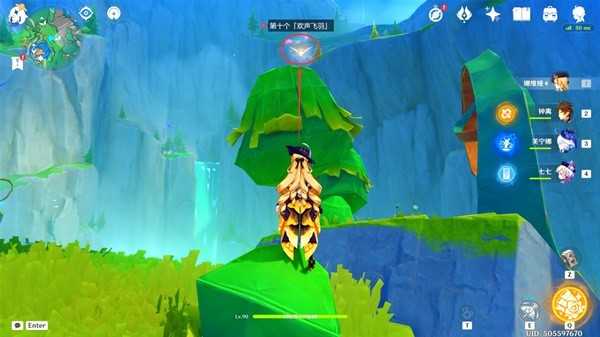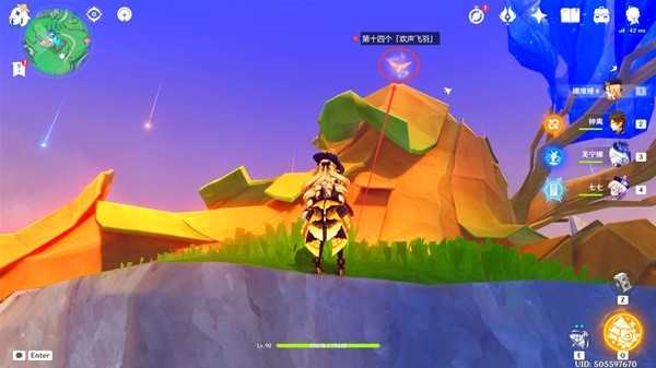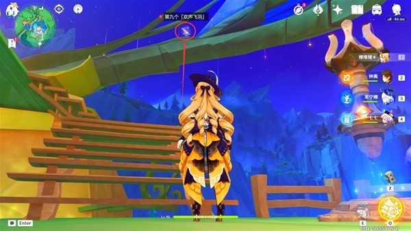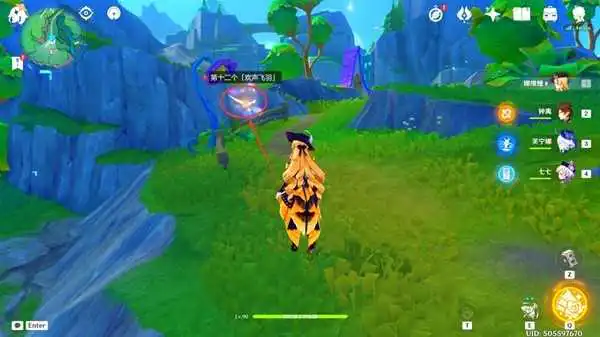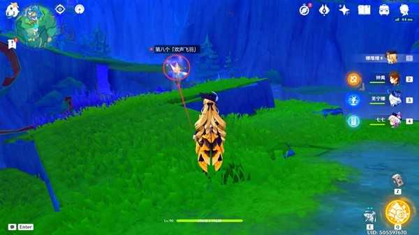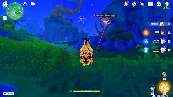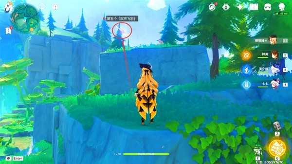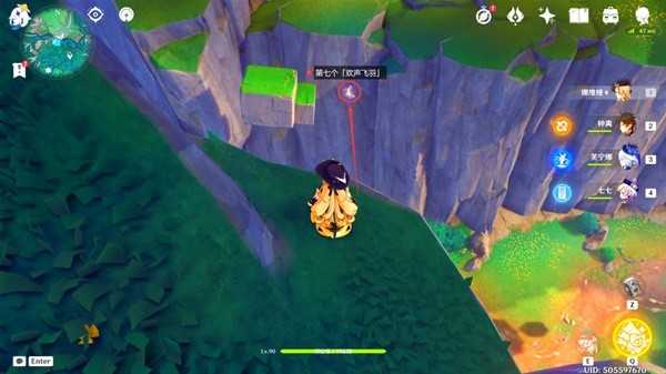 在此处的峡谷空中,可以看到第七个「欢声飞羽」(直接飞过去触碰即可)