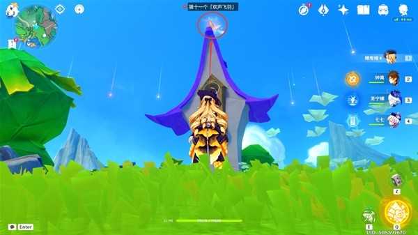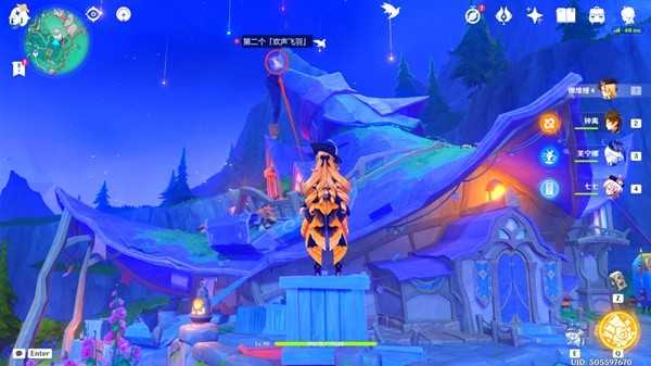 在此处的屋顶上,可以看到第十一个「欢声飞羽」(直接爬上去触碰即可)
