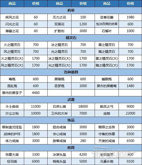 各属性精灵石(大)在应对各种强力怪物或稀有怪时非常有用,伤害大约在2000左右,价格只有1700,性价比非常高。尤其是能够一击击败稀有怪凯特林和奥克托林,建议至少准备1-2个。