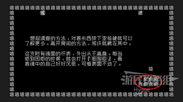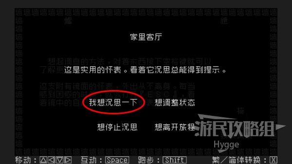 来到房间右下角的桌子旁按下空格键可以进行互动,之后按下ESC可以通过沉思获得提示。