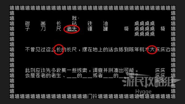 但由于老人已经过于年迈,已经忘记了自己到底是谁,我们需要在房间中用【老】找到两个形容词和两个名词,来确定老人的身份。