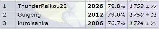改队后ps比较顺利的冲到了1900,菇法交流赛中也顺利取胜。之后更是达到了瞬时2000分。