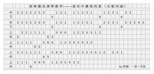 《原神》中玩家可以使用风花节兑换的风物之诗琴来演奏各种好听的曲子,那么我们可否演奏出夜空中最亮的星呢?现在为大家带来“轩瑄丶一步一天坑”分享的《原神》夜空中最亮的星演奏谱分享,希望对大家有所帮助。