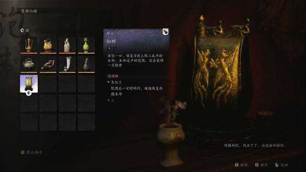 这个酒没什么好评价的,我觉得如果需要棍势,不如定身棍花,或者嗑药直接满棍势,用酒回棍势又少又比较多此一举,正常情况你残了也只能纯回血了,回血量也很低,想不到有什么用武之地,并且泡酒物只有两个位置,隐身蓄力打法或者猴戏能用这个省点药但泡酒物数量也少,唯一的好处是获取途径早,如果你一个三冬虫没找到可以用它。