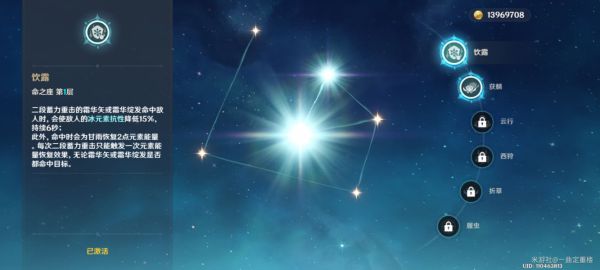 1、一命,重击霜华矢减少敌人15%冰元素抗性,命中时为甘雨回复少量能量