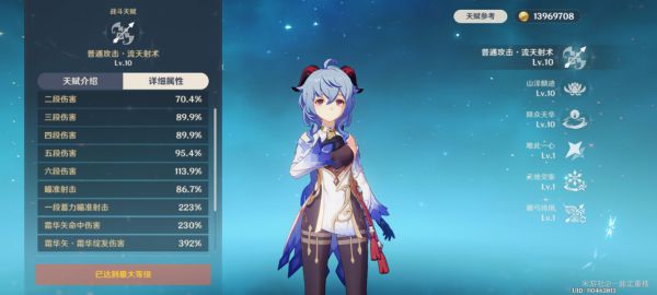 10级普攻的两段霜花矢总倍率高达622%,使得甘雨的主要输出手段为蓄力普攻