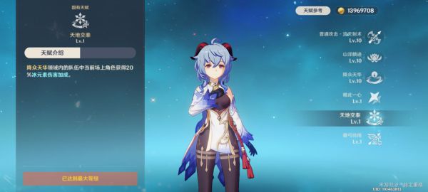 固有天赋“天地交泰”可以为处于甘雨大招的场上队友提供20%的冰元素伤害加成,这也使甘雨拥有一定的辅助能力