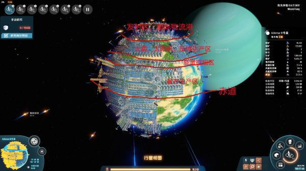 首先是我的母星规划,一图流为了充分利用土地,各个区可以不用相互干扰,高纬度的强迫症重灾区地区也可以规整的建设了,图中是南半球,北半球同理镜像