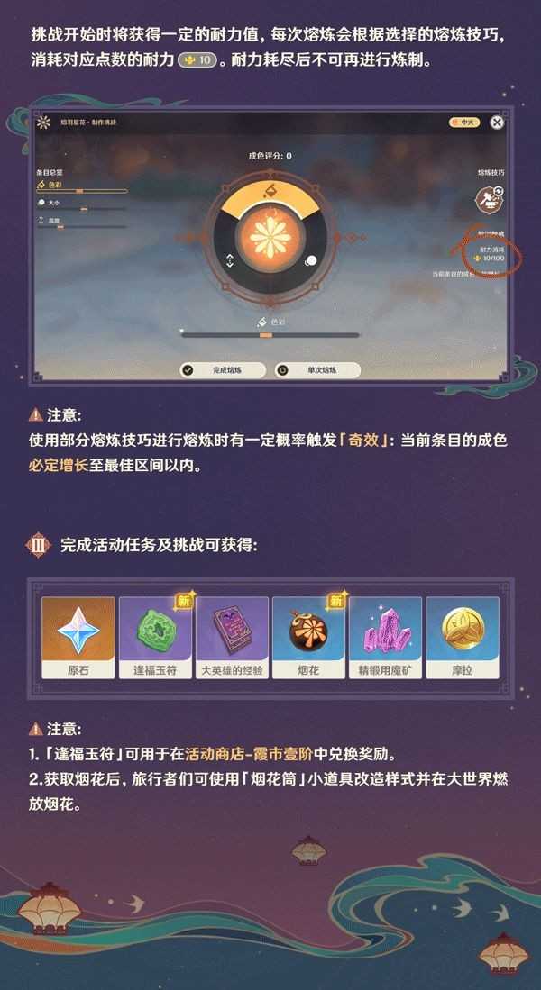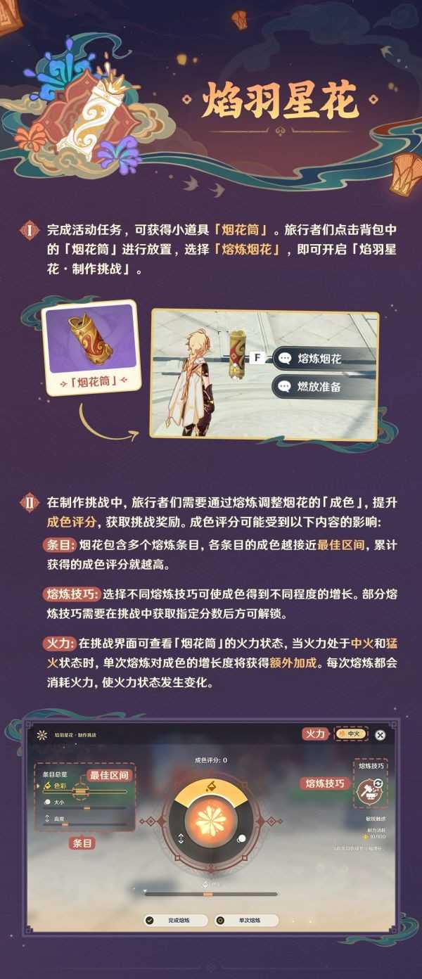 「飞彩镌流年」共包含四个主题,分别为:「焰羽星花」、「玄璧云聚」、「灯中妙影」及「武卫重溟」。接下来让我们一起看看这些主题的玩法吧~