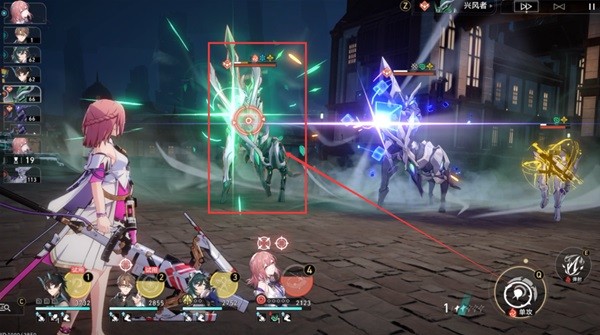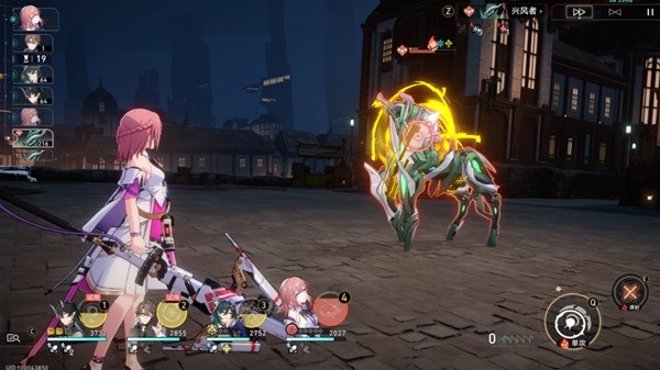 接着,瓦尔特战技,主目标选择中间的精英怪,然后就看脸弹射了,运气好两只精英都会被击破,运气不好就只能击破其中一只了。我这里运气不好,只击破了中间这只。接着轮到驭空,驭空在两只精英中挑一只普攻,优先选择能击破的那只,并且驭空能量回满,这时候不要着急开大。