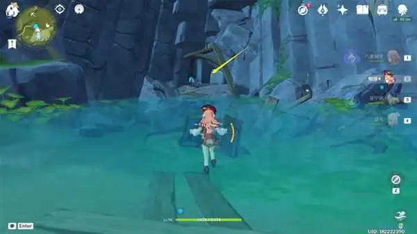 (14号~16号)明蕴镇北边传送点,转西南方向视角一直冲刺,前方有丘丘暴徒守着一个矿道口