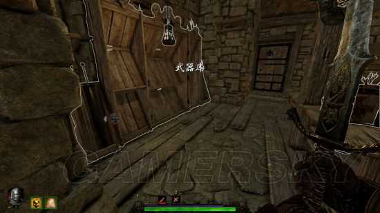4.庭院,出生左边楼梯上到一半出门有假人,可以测试自己的武器伤害,假人后面楼梯上去还有持盾的假人。游戏中会有带甲的敌人,这里也可以模拟伤害。