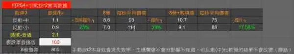 但这样的测试结果并不影响反动中跟反动小的差距,你手速慢或主机慢是你家的事,「反动中」不管你手快手慢,它都会多出0.2秒的动作时间,这是固定不变的值(废话,可以变的话肯定是你家PS4装了什么脏东西)。