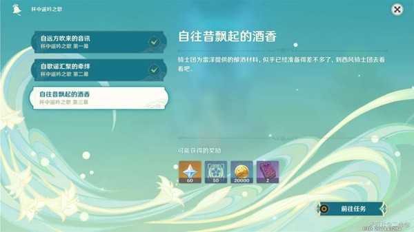 《原神》杯中遥吟之歌活动已经开启了第三幕任务自往昔飘起的酒香,那么此任务应该怎么完成呢?下面请看玩家“二也也”带来的《原神》3.1版自往昔飘起的酒香任务攻略,一起看看吧。