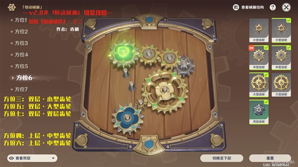 利用上层和双层的排布进行齿轮组装,注意区分左下角的层级切换