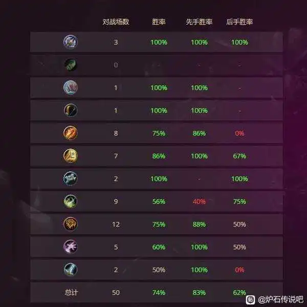 就讲一下遇到最多的法师跟萨满吧,由于没带斩杀打40大法的关键在于养土灵,先手起手留刀跟小怪,后手可看情况留导购跟四费石心之王,前期我们有小怪和刀站场,土灵可以提前出,法师会浪费回合数解决信徒,这里我们带了两个模块,稍微吃下土灵跟石心之王就可以把土灵养的很大,彩蹄的重要性不是很大,能五费出那最好。40法师一般带两个回荡甚至130,泰坦即使配合导购能五费下去也要考虑回荡的情况,即使场面优势也不太建议下泰坦,容易被130或者回荡丢场面。卡组带了一张佳酿和一个混调师,佳酿可以前期给随从贴稳住场面,这样血量不会被水人压的太低,混调师可以在丢场面的情况下找复活或者aoe 进行返场,打法师只要不是遇到三费导购,四费农都可以轻松应对。