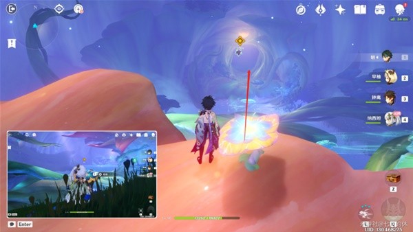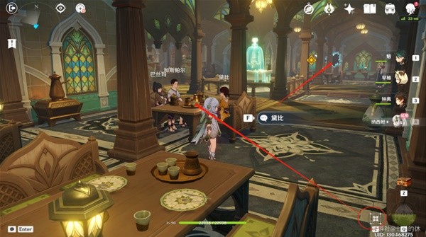 用草神的e技能,对这个桌子上的人使用,过完剧情进入出现的洞口