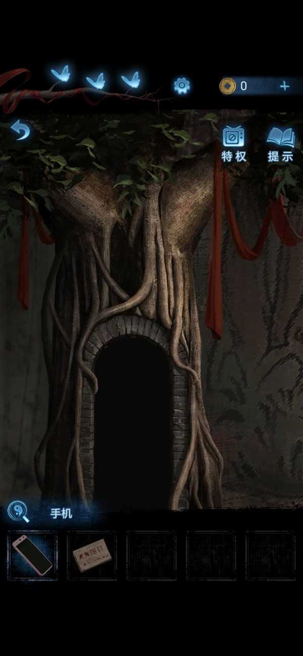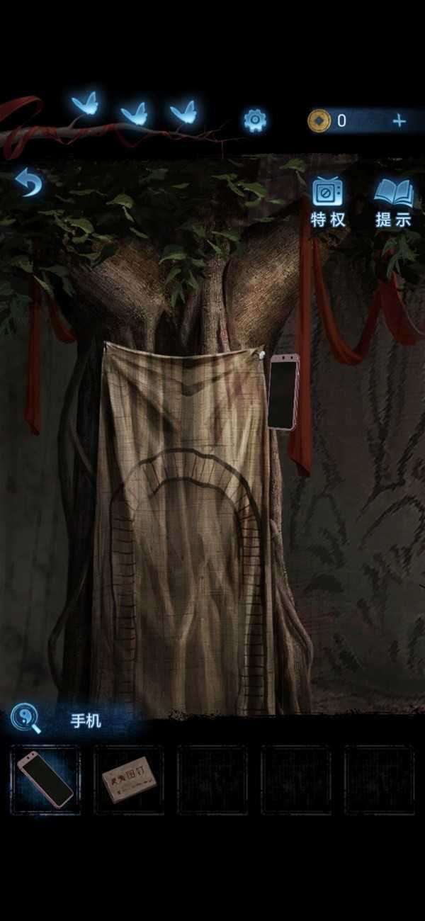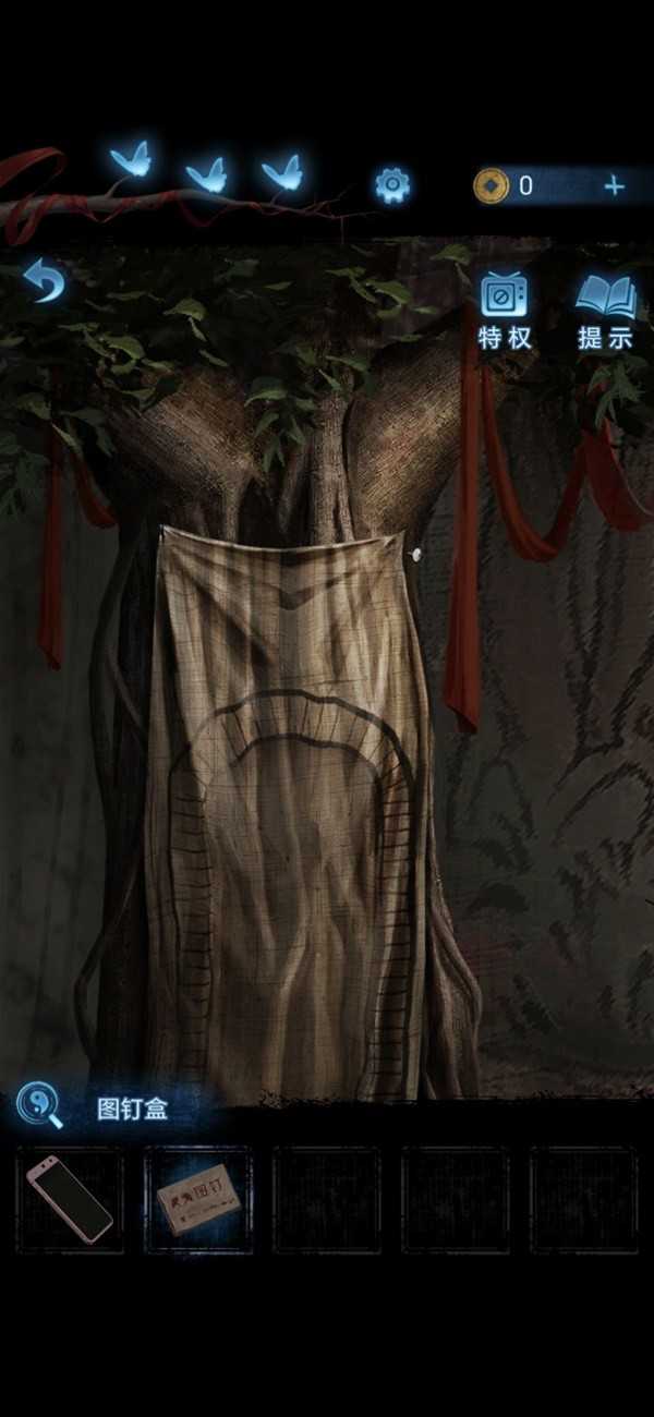 用图钉将树上的幕布挂起来,用手机把图钉砸进去,大树变门