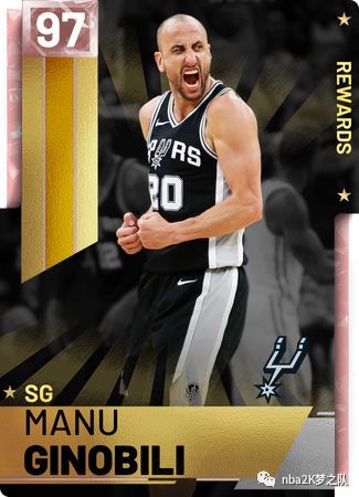 粉钻马努是上个赛季的12胜奖励,目前已经绝版。这张马努在进攻端的威力很强,投篮准(三分93)、速度快(95)、控球强(95),独门绝技“欧洲步”更是让人难以防范,想完全防住马努的进攻真的很难。