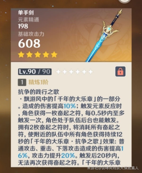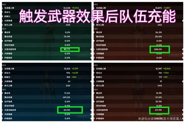 需要使用该武器都角色必须有两个共同点,第一是本身要堆精通;第二是其本人或者队伍其它角色需要充能,充能必须为有效词条。