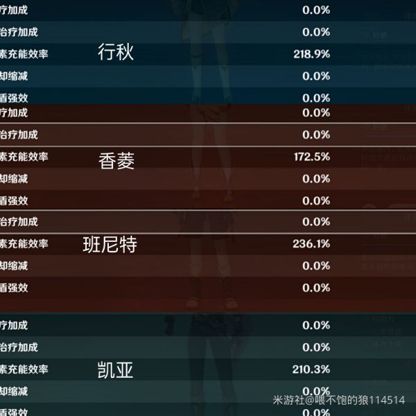 我见过很多刚刚玩国家队,说国家队烂的,一看面板香菱充能110,行秋充能150,大招都连不起来,根本打不出效果