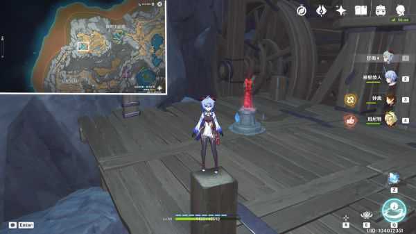 岩微粒在旁边的木起重机上面。每次开启挑战都需要先充能。
