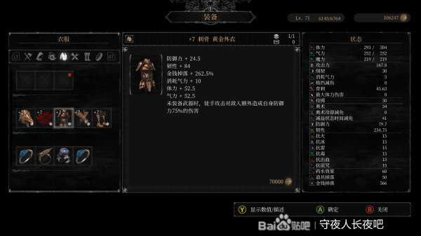 这游戏的防御是非线性的,在二周目胖子怪一下双手下砸0防御时是217点伤害,24.5防御时是158的伤害,40防御时是120的伤害,70防御时是50的伤害,防御堆得越高收益也就越大
