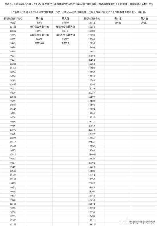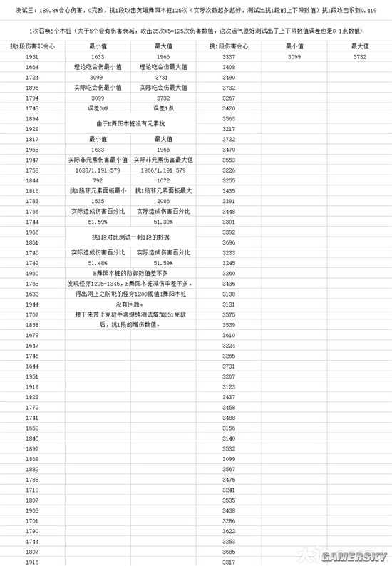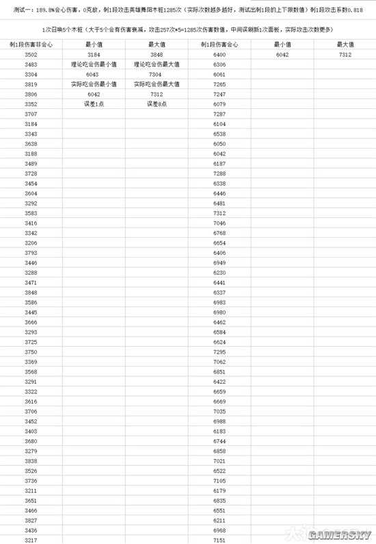 1:用刺1段,挑1段,崩龙腿总测试攻击次数大于5425次,部分因为不小心点到清除伤害丢失了测试1的刺1段攻击次数。得出克敌数值