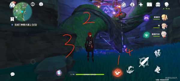 第三个解密 树上左右为2 2 左边树干后面是3 1号的右边是4 这个任务后面会一直做。