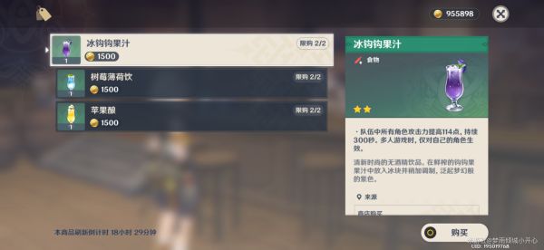 (1)天使的馈赠里与查尔斯对话购买的【冰钩钩果汁】【树莓薄荷饮】【苹果酿】