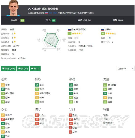 科科林作为现在俄罗斯阵中最具进攻能力的球员之一,射术出色,能力全面是其最大的标志。虽然十字韧带的伤病让他的世界杯前景不容乐观,但是游戏中的他是一位出色的射手,身体素质超棒他能够完成绝大部分的技术动作,值得一试。