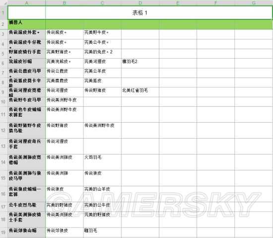 自制一份狩猎指南,之后野外打到猎物就可以直接查到用途了。
