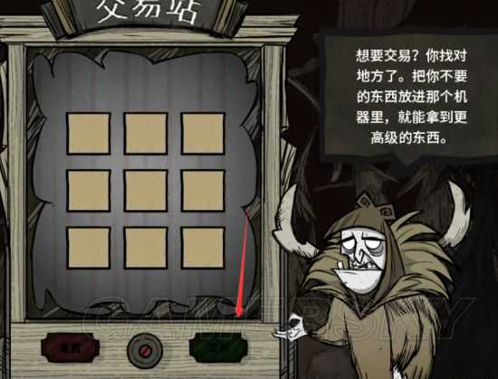 在左边框里找出品质低的和不用的皮肤放进交易机器里。放好后箭头所指的交易。兑换比例是9:1。开出的品质同样是随机的。