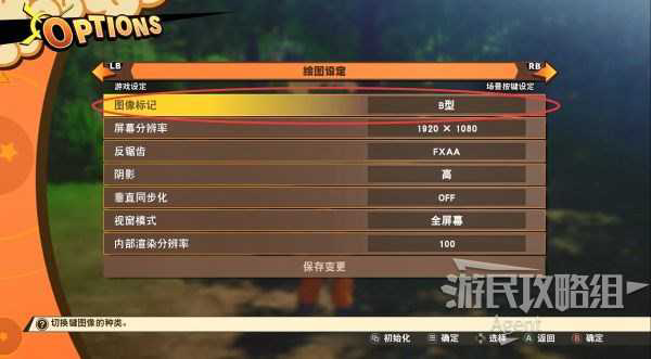 在“选项——绘图设定”中找到“图像标记”。游戏默认是B型,所以游戏中的提示按键是XBOX手柄的按键。