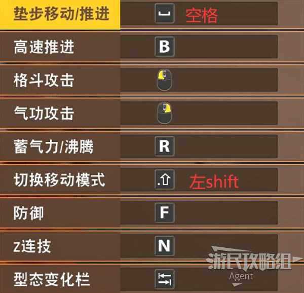 这里列出的是默认按键对应,如果不喜欢可以自行更改。