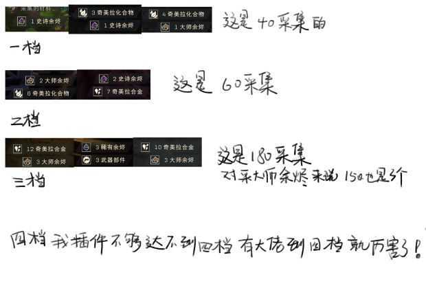 举个栗子:这个物品采集出来4个合金1个大师余烬。但你捡到物品时候得到的物品=4合金*(1+当前采集量)+1余烬*(1+当前采集量)。