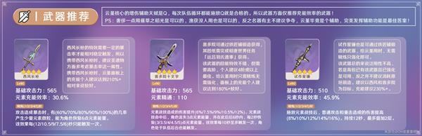 在武器方面如果说胚子足够的话可以锻造一把四精以上的喜多院;如果圣遗物暴击词条比较多可以选择西风枪,能加速队伍循环;如果二者都没有可以试试试作星镰,不过泛用性并不高就是了,也算是各有优劣。