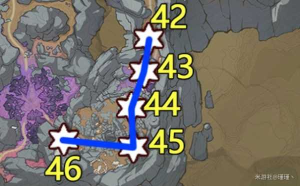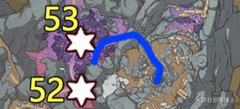 这里你只要主线推到无名遗迹下方,你从「崎岖石厅」下方传送点往右边石路上走就会触发魔神任务(大致路线如上),这样你就会上到倒挂的遗迹里面,根据任务提示你一直往上走就能开启一个倒挂的锚点,然后往右边断裂的石板上飞,经过缠绕着的粗树枝就能看到52号点位;