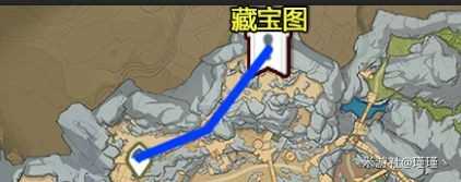 藏宝图2:做支线任务「千年千岩」其中获取任务道具之一的「共饮之杯」时,我们可以顺便过去拿第二张藏宝图,在营地堆砌着的背包上,走过去就会看到(有亮光);