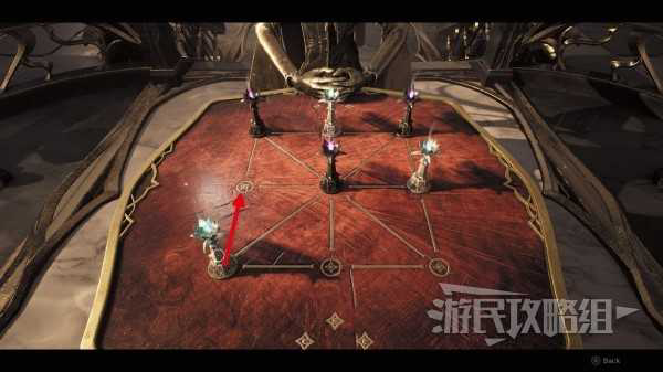 此戒指位于左下角房间的两扇门后方,在有队友的情况下更容易获得。一名玩家下棋,另一名玩家前往房间配合移动。下棋玩家先把白色棋子移动到左下角位置,移动玩家进入左下角房间的第一扇门;然后下棋玩家输掉棋局使棋子重置到初始位置,移动玩家穿过左下角房间的第二扇门,拿到道具。