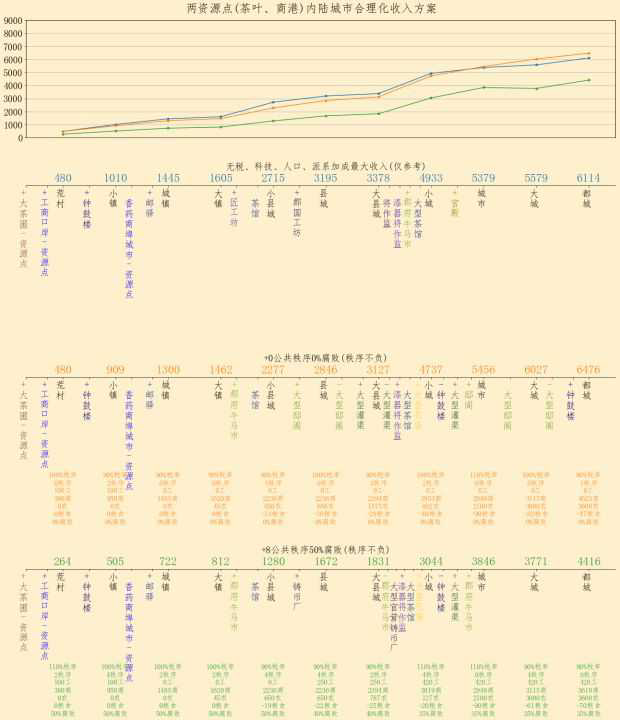 但是要注意到:最大化产出会在工业、商业城市里卖粮,攘除这部分增益后收入最高的恐怕还是农业城市。此外,对于鄱阳这种工业城市而言,当工业产值到达1000时,农业产值竟然高达1500……可见农业产值的威力。
