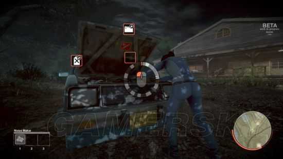 开车就相当困难,车子有两台,两人坐和四人坐,你要找到汽油和电瓶来修车,修车的时候要按QTE,而且还要找到随机出现的钥匙。钥匙应该每场是两把,藏在某一间小屋的某个抽屉内,凑齐修好之后,然后把车子开到任意一个出口就可以。也有可能你辛苦冒着生命危险,放上了汽油修理了电瓶,结果车子被找到钥匙的人开走,这种状况很有可能发生的,我自己就碰到好几局。最大的原因可能是因为,我就是偷开车的人。