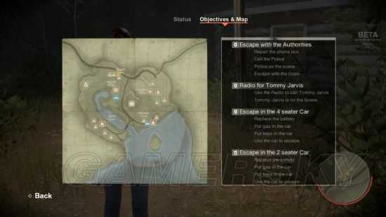 在Beta测试时十三号星期五只开放了一张地图,就在杰森溺死的水晶湖露营区,你有两个方式可以逃出,一种是叫警察,一种是自己开车。