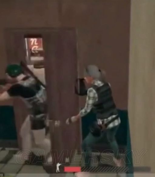 通常玩家开门的时候往往忽略了门背后,且门背后是玩家第一时间的视野盲区,非常适合用来阴人,这个位置在使用过程中尽量选择在二楼,这样不容易被敌人从窗户发现。