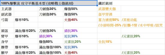 如果真的觉得元素抗还是不够,可以先从腿甲火伤40%换元素抗20%,再不行就只好放弃臂甲10%爆率换元素抗20%(只是这样就变成90%爆击流了)或者需要换烂烂的紫色长矛御水大师(任务奖励)、利爪匕首/金铭刻(商城)来补。