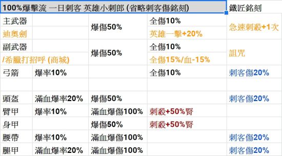 诅咒配上100%爆击流,基本上刺客都是伤害溢出,臂甲身甲改放刺杀+50%肾上腺素(放弃臂甲爆伤50%、身甲全伤10%)刺杀一次可以补回3-4格肾上腺素。如果追求极限数值,可以自行再换回。