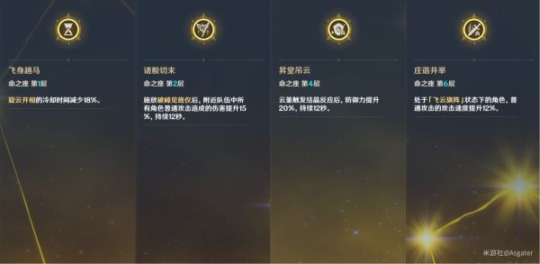 6命增加【飞云旗阵】状态下角色的攻速,可以在该效果期间内尽可能多打出普攻,增加输出效率。