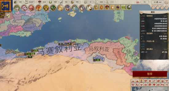 比如很多石料产地掌握在西班牙的部落联盟手中,还有很多在迦太基手中;硬打的话,毛里塔尼亚会显得很弱(自己是君主制),而马赛叙利亚稍微好一点(开局是定居部落,武德充沛)。