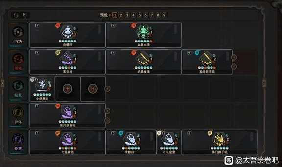 内功:洗髓 正血童 正易筋经.灵悟功 :自己取舍主要是看格子和运功效果,没有决定性的,可以堆高护体出血童补伤害也可以堆催破出易筋经补护体。