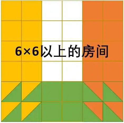 交叠处:西南角(进门背后左侧角落) 4格交叠处摆放“黄绿色家具“、东南角(进门背后右侧角落) 4格交叠处摆放“红绿色家具”也会提升整体气运。